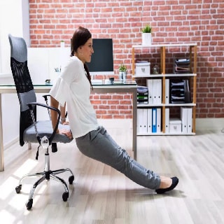 The chair dip is designed to give your triceps and legs an intense workout, two muscles that you need to keep busy while sitting at a desk for an extended time. It will seem ridiculous if your colleagues do not exercise at their desks, but if you share this article with them, maybe a few of them will join you.