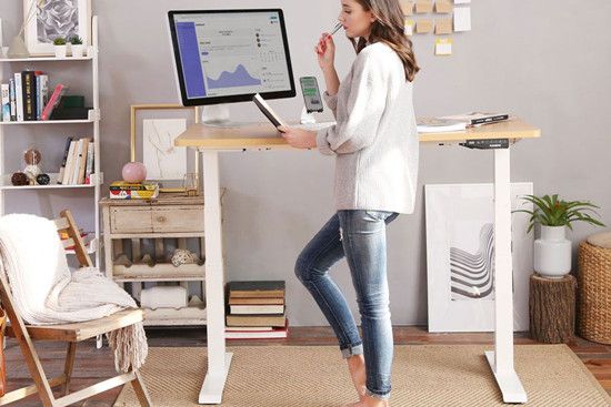 The E5 desk is one option in the highly customizable line of FlexiSpot electric height adjustable desks. The rectangular desktop (mahogany, black, grey or maple) with grey frame is currently available for a discounted price of $359.99, while the rectangular desktop with black frame is available for $409.99.