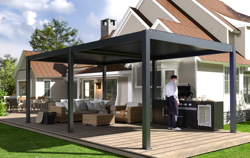 - Hot, sunny climates: Look for UV-resistant fabrics or aluminum louvered pergola roofs that allow you to control light and airflow.