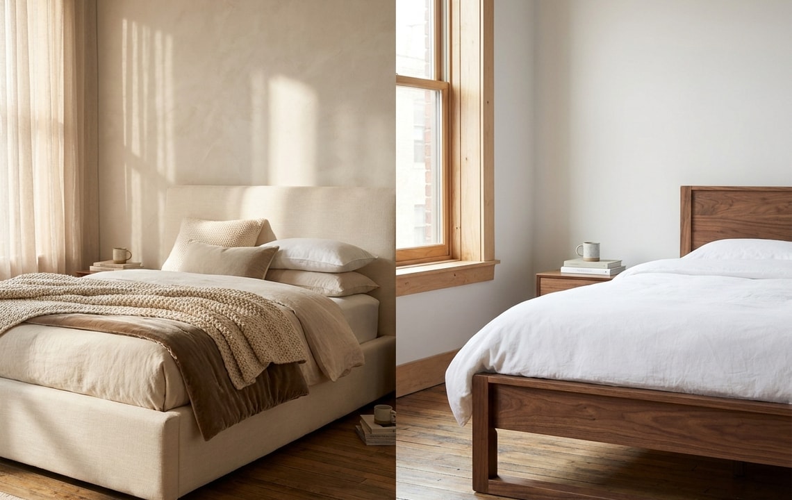 An upholstered silhouette tells one story. A well-crafted wood frame tells another. Neither is better. They simply lead the room in different directions.